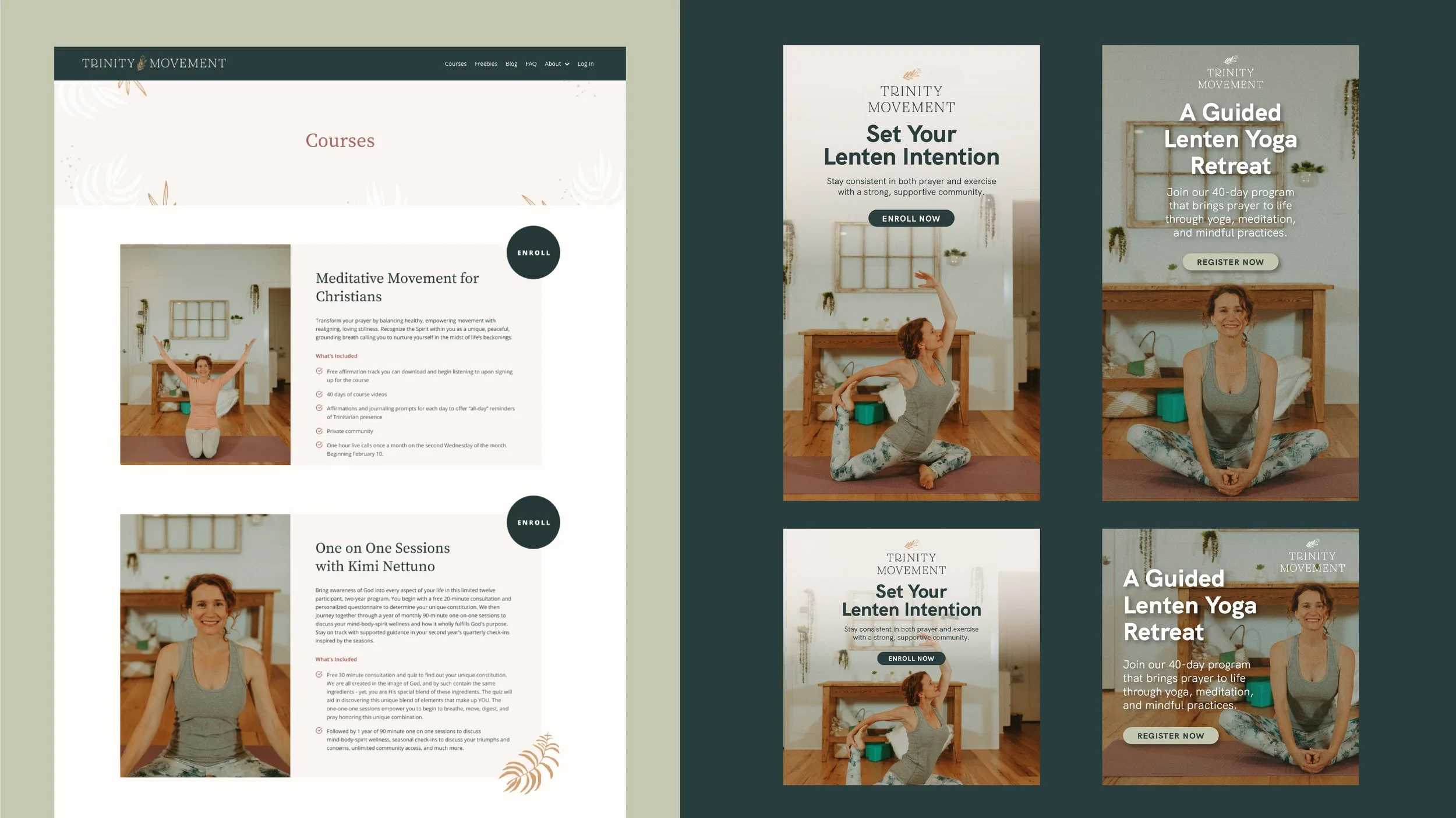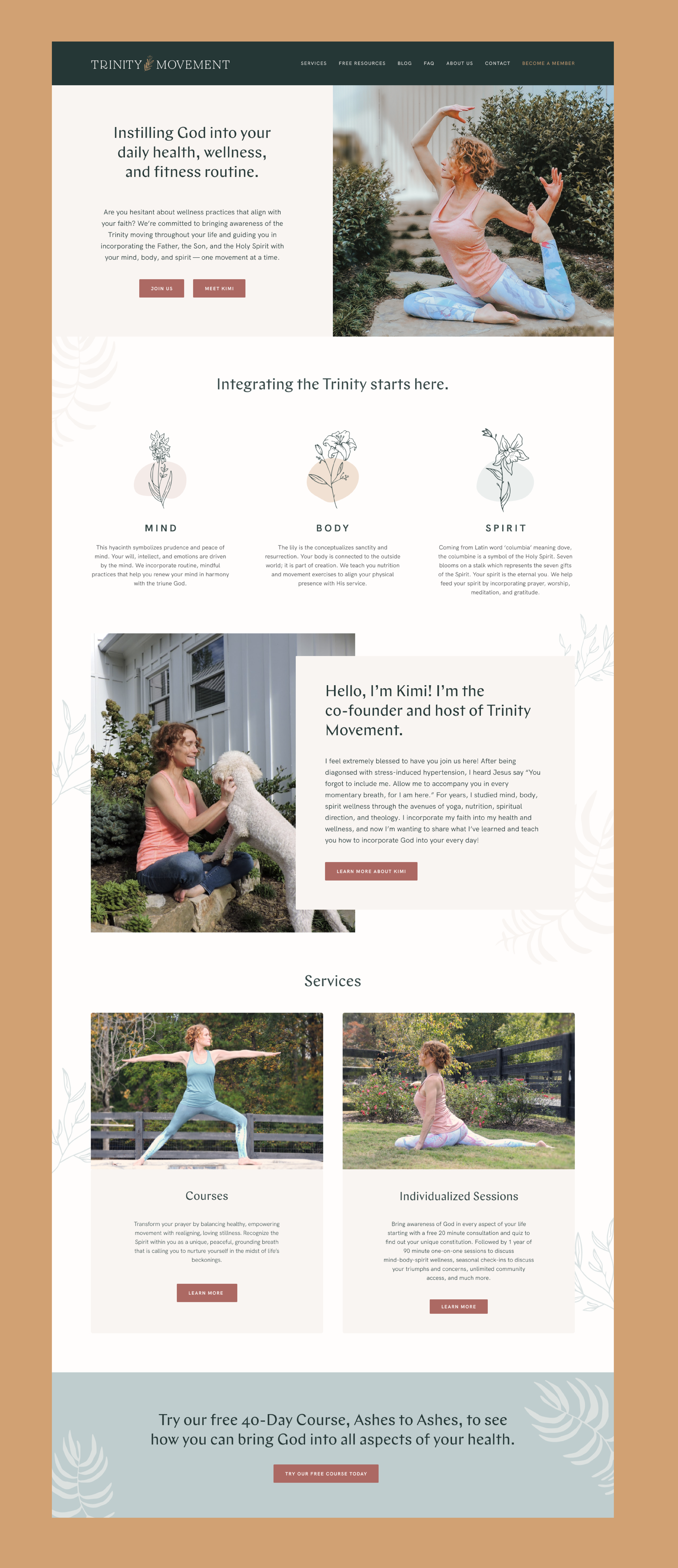 Trinity Movement is a yoga program founded by yogi Kimi Nettuno, originally focused on Christian-based online classes and retreats. The brand is evolving to offer in-person classes locally, shifting the focus toward yoga while maintaining a supportive connection to faith. Trinity Movement now presents itself as a welcoming, safe space where wellness and spirituality can coexist, and it is expanding into e-commerce to provide online resources for a broader audience that resonates with their brand values.